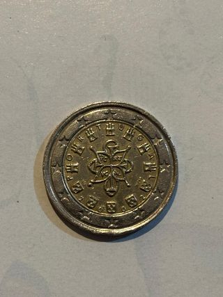 Moneda de 2 euros de Portugal del año 2002. - Diseño con el escudo de Portugal. - Borde con estrellas y leyendas.