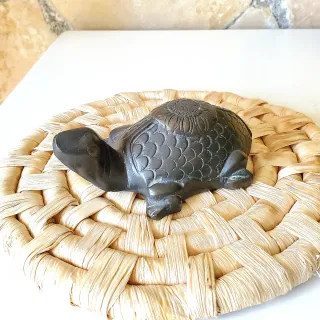 Bonita tortuga decorativa antigua realizada en bronce (aleación de cobre), con pátina oscura original y buen peso para su tamaño. Presenta un trabajo grabado de escamas y un motivo circular solar en el caparazón. Pieza decorativa típica de objetos de escritorio o decoración clásica. La tortuga es símbolo de longevidad y estabilidad, ideal para decoración vintage, rústica o estilo gabinete de curiosidades. 📏 Medidas: aprox. 11,5 × 7 × 4 cm ⚖️ Peso: 380 g 📌 Estado: buen estado antiguo con pátina