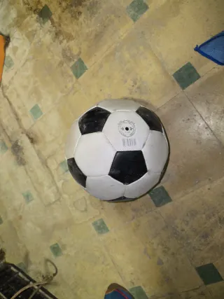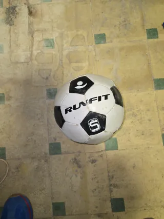 Balón de cuero de la marca RUNFIT. Ideal para entrenamientos y partidos. - Diseño clásico blanco y negro. - Logotipo de la marca visible.