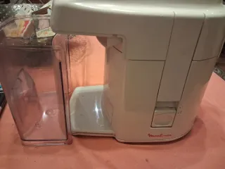 Licuadora de la marca Moulinex, con un diseño moderno y funcional. - Cuerpo de plástico blanco. - Jarra transparente. - Interruptor de encendido/apagado.