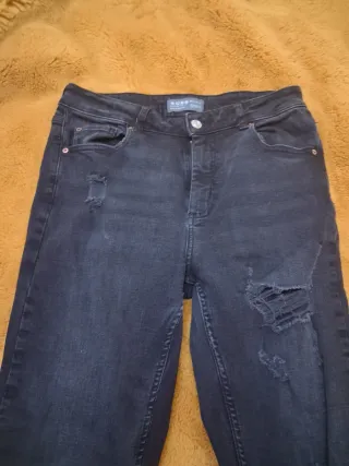 Pantalón vaquero de corte ajustado con un estilo moderno y desgastado. - Diseño con rotos. - Bajo deshilachado. - Cintura con trabillas para cinturón.