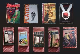 Precio de cada libro: 5€ · Susana Prieto y Lea Vélez, El Desván Plaza Janés · Jules Verne, P'tit-Bonhomme (Aventuras de un niño irlandés) Colección "Clásicos de Aventuras", Legasa, 19809 · Ruth Rendell, Un cuento chino Narrativas contemporáneas, Edhasa, 1989 · Arturo Pérez Reverte, La Tabla de Flandes Alfaguara, 1992 · Catecismo de la doctrina cristiana Tercer grado Editorial La Hormiga de Oro, 1955 · Joss Irisch, Nostradamus Terroríficas profecías · Stephenie Meyer, Crepúsculo (Alfaguara) (10 €) Estado: Por estrenar · E. A. Dal Maschio, Platón, La verdad está en otra parte · Jerry Minchinton, 50 pasos para una transformación person