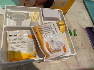Set de extractor de leche eléctrico Medela, incluye bolsas de almacenamiento y accesorios. - Extractor de leche eléctrico Medela. - Bolsas para almacenamiento de leche materna Medela (4 bolsas). - Accesorios para el extractor. - Bolsas Quick Clean para microondas.