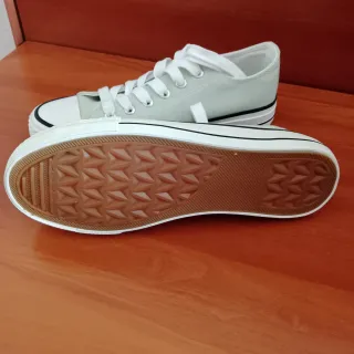 Zapatillas de lona con cordones. - Diseño clásico de zapatilla baja. - Suela de goma blanca. - Detalle de línea negra en la suela.