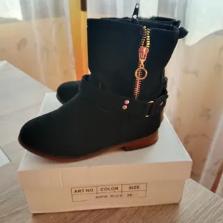Botas de niña en color negro, perfectas para el día a día. - Material exterior: textil. - Cierre de cremallera lateral dorada. - Detalle de hebilla. - Suela de goma.
