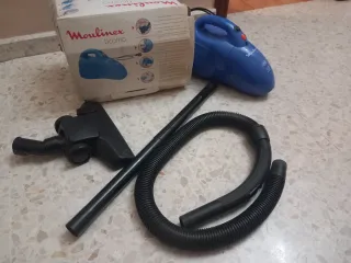 Aspiradora Moulinex Ticom de mano, color azul. - Incluye accesorios. - Manguera flexible. - Tubo de extensión.