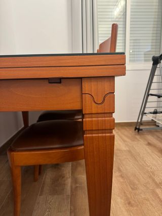 Mesa extensible madera provenzal+cristal+6 sillas