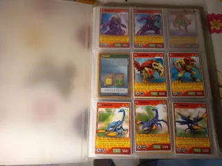 Álbum de cartas Invizimals. - Incluye varias cartas de personajes como Flamewclaw y Firecracker. - Algunas cartas muestran estadísticas de ataque y defensa. - El álbum está en buenas condiciones. - Con más de 200 cartas