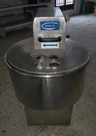 Amasadora industrial de la marca RAMON, ideal para la preparación de embutidos. - Fabricada en acero inoxidable. - Tapa con orificios para la introducción de ingredientes. - Diseño robusto y profesional.