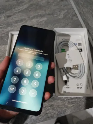 Teléfono móvil Vivo Y19s. - Pantalla con teclado numérico. - Incluye cable de carga. - Caja original. Nuevo con su caja y elementos sin estrenar
