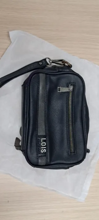 Bolso de piel para hombre, estilo bandolera. - Cierre de solapa con broche metálico. - Bolsillo frontal con cremallera. - Correa ajustable para llevar al hombro. - Pequeño detalle metálico con logo en la parte frontal.