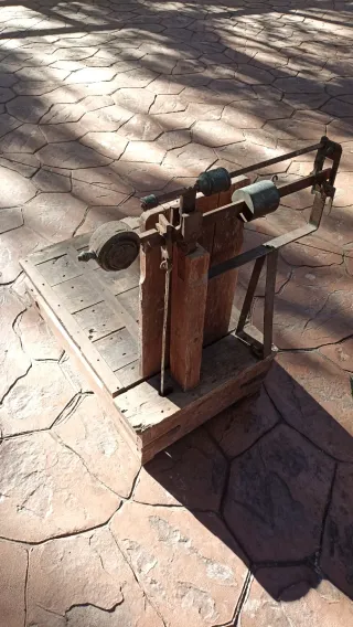 Báscula antigua de madera y metal
