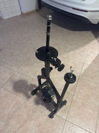 Herramienta para el montaje y desmontaje de neumáticos de karting. Fabricada en metal resistente. - Base estable. - Eje central. - Soporte para llanta.