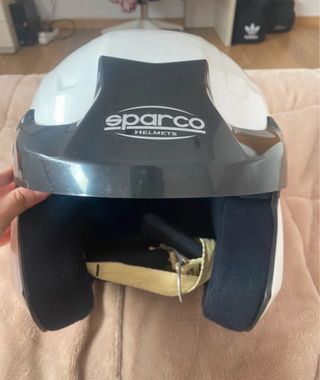 Casco de rally Sparco en talla M. Diseñado para ofrecer seguridad y comodidad. - Color blanco y negro. - Interior acolchado. - Cierre de seguridad.
