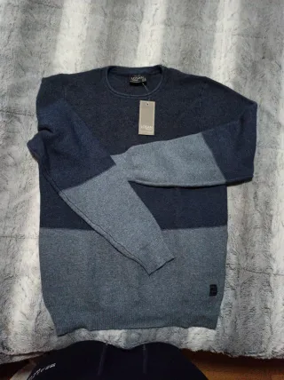 Jersey de punto para hombre con diseño de bloques de color. - Cuello redondo. - Manga larga. - Detalle de etiqueta en la parte inferior.