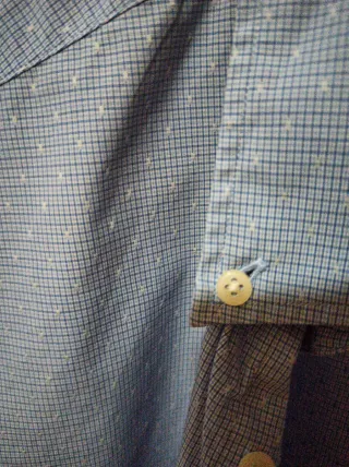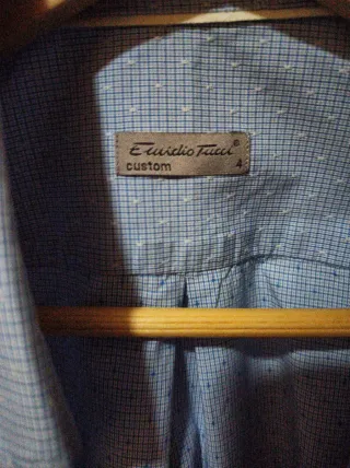Camisa de vestir de la marca Emidio Tucci. - Diseño de cuadros pequeños en tonos azules. - Cuello clásico. - Etiqueta interior con el nombre de la marca y talla.