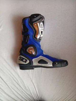 Botas de moto de la marca Sidi. - Diseño en color azul y plateado. - Detalle de logo en los laterales. - Protecciones integradas.