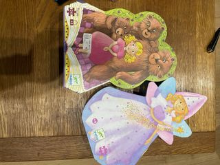 Dos puzzles de la marca Djeco, ideales para los más pequeños. Uno tiene 24 piezas y el otro 36 piezas. - Puzzle de 24 piezas con diseño de osos y una niña. - Puzzle de 36 piezas con diseño de hada.