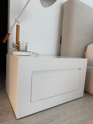 Mesita de noche moderna con acabado lacado en blanco. - Fabricada en madera maciza. - Diseño minimalista y elegante.