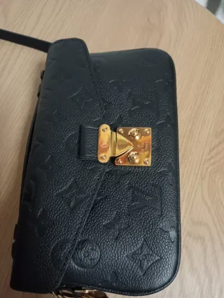Elegante bolso Louis Vuitton en color negro. Su diseño texturizado con el icónico monograma le da un toque distintivo. - Material: Piel texturizada. - Cierre: Dorado con logo. - Correa: Ajustable.