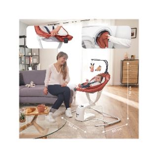 DESCRIPCIÓN Esta hamaca es un nidito de diseño, ergonómica, mullida y relajante para tranquilizar al bebé, acompañarle hasta que se duerma o divertirle cuando está despierto. SUS VENTAJAS: Práctica e ingeniosa, con detector de movimientos que acciona el balanceo cuando el bebé se mueve o comienza a llorar. Función hamaca o balanceo. Asiento giratorio 360°. Respaldo con 2 posiciones: posición alta (75 cm), para que el bebé esté estimulado y participe en la vida familiar durante las comidas, y posición baja (55 cm). Asiento (3 posiciones de inclinación) ajustable con una sola mano. Cojín reductor desmontable especial recién nacido.