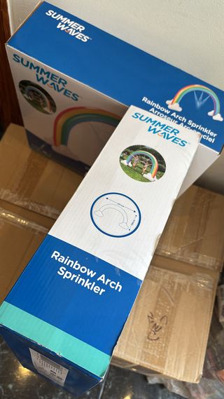 Se venden dos inflables de arcoíris de la marca Summer Waves. Son perfectos para añadir diversión al jardín. - Incluye dos unidades. - Diseño de arcoíris con nubes.