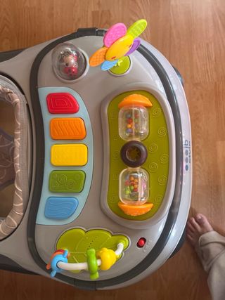 Taca taca para bebé con asiento acolchado y bandeja de juegos. - Asiento acolchado con estampado. - Bandeja con juguetes. - Diseño moderno y seguro.