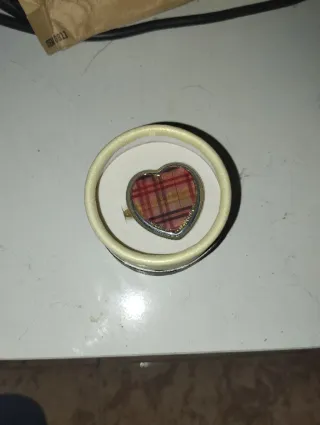 Anillo con un diseño de corazón y un patrón tartán. - Forma de corazón. - Patrón tartán en tonos rojos y dorados. !NO HAGO ENVIOS!!