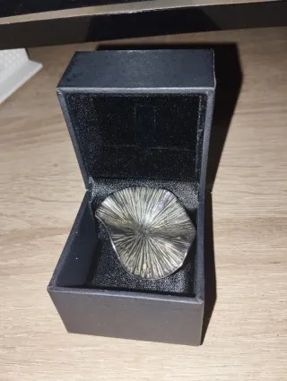 Anillo con un diseño inspirado en una hoja, con un acabado metálico. - Diseño detallado. - Acabado brillante. !NO HAGO ENVIOS!!