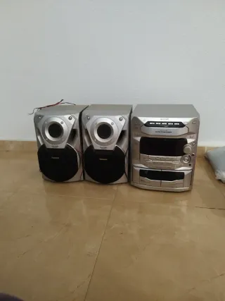 Minicadena Panasonic con reproductor de 5 CDs. - Diseño plateado y negro. - Doble pletina de casete. - Altavoces incluidos.
