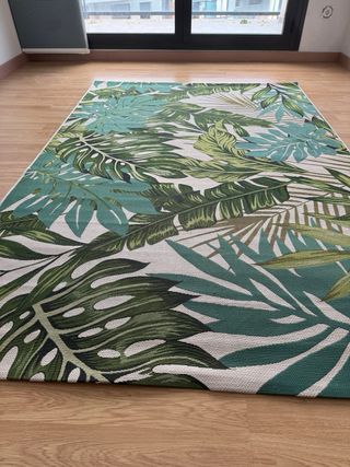 Vendo alfombra de la marca MAISONS DU MONDE con un diseño vibrante de hojas tropicales, perfecta para dar un toque de naturaleza a tu hogar, terraza, balcón, patio o porche... Medidas 160cm x 230cm. Nuevísima apenas tiene uso.