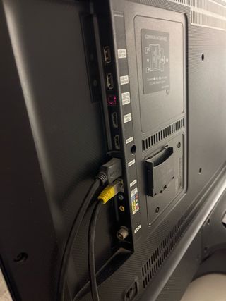 Televisor Samsung de 40 pulgadas. - Color negro y detalles en plata. - Pantalla de 40 pulgadas. -Pequeño desperfecto en la pata izquierda. -Incluye mando