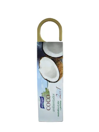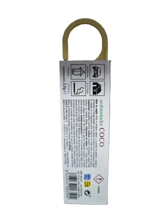 Ambientador con fragancia a coco para tu hogar. Neutraliza olores y perfuma. - Aroma a coco. - Formato colgante. - 2 en 1: neutraliza y perfuma.