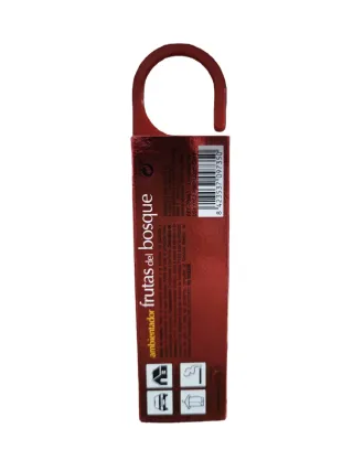 Ambientador colgante con fragancia a frutas del bosque. - Neutraliza el olor y perfuma. - Formato 2 en 1. - Diseño con imagen de frutos rojos.