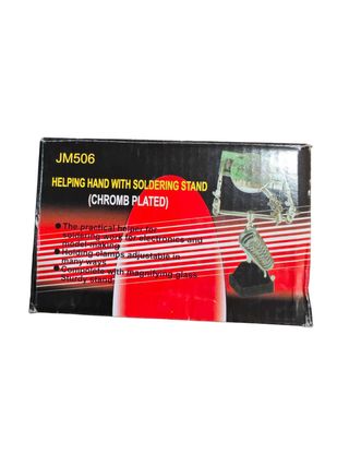 Ayuda práctica para trabajos de soldadura en electrónica y modelismo. Incluye lupa. - Pinzas ajustables en múltiples posiciones. - Base robusta y estable.