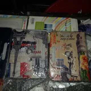 Se venden dos fundas para tabletas con diseños inspirados en monumentos icónicos. - Una funda presenta un diseño de la Torre Eiffel y el estilo de un periódico antiguo. - La otra funda muestra la Torre de Pisa y flores, con la frase Discover the songs of nature. - Ambas fundas tienen un acabado mate y un diseño giratorio.