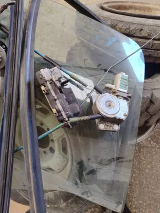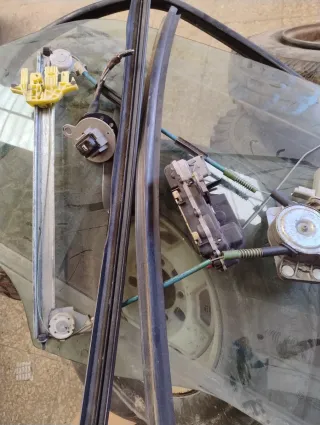 Mecanismo completo para elevalunas de coche, con motor y cables. - Incluye motor eléctrico. - Cables de tracción. - Guías de metal. Cerradura goma todo