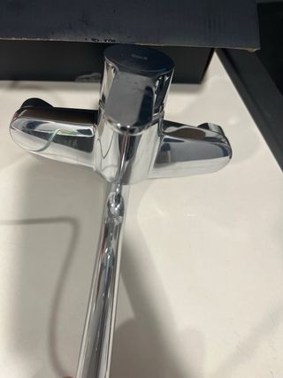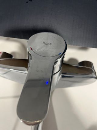 Grifo de la marca Roca, con un acabado plateado. - Diseño moderno y elegante. - Fabricado en metal de alta calidad.