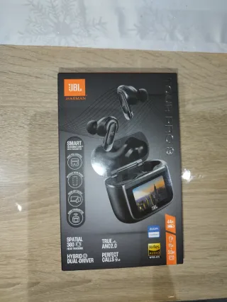 Auriculares inalámbricos JBL Tour Pro 3 en color negro. Ofrecen sonido de alta calidad y cancelación de ruido. - Cancelación de ruido activa híbrida (ANC 2.0). - Sonido espacial 360 con seguimiento de cabeza. - Drivers duales. - Llamadas perfectas. - Hasta 44 horas de autonomía total con el estuche de carga. - Carga rápida. - Audio Hi-Res Wireless.