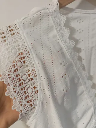 Precioso top estilo ibicenco sin estrenar talla L. - Diseño con detalles de encaje. - Escote en pico. - Corte peplum.
