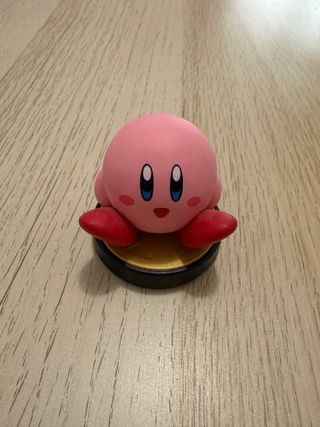 Figura Amiibo de Kirby de la serie Super Smash Bros. - Diseño del personaje Kirby. - Base negra con detalles dorados. - Si te interesan los amiibo, échale un vistazo a mi perfil porque seguro tengo alguno más.