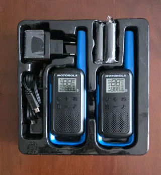 ● 1 juego de 2 unidades de Radios PMR446 sin licencia. Función de llamada de grupo para sincronización sencilla. Pantalla retroiluminada. 16 canales y 121 codigos de privacidad. Fuente de alimentacin dual - Pilas alcalinas astánda AA o pilas recargables NiIMH (incluidas). Cargador USB . Manos libres . Exploración/Control . Hasta 8 km. de alcance. La T62 de MOTOROLA. Nuevos, A ESTRENAR.