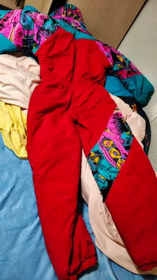 Mono traje nieve de esquí 16... creo que es una M. Tiene sus manchas y desgastes del uso, pero está en buen estado, no tiene rajadas ni cortes, solo algunas manchas de las fotos. Medidas aproximadas: brazos 67 cm, cintura 80 cm, pierna 74 cm, altura total 150 cm.