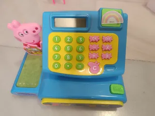Divertida caja registradora de juguete con temática de Peppa Pig. - Incluye teclado numérico y botones de operación. - Pantalla LCD. - Figura de Peppa Pig. - Diseño colorido y atractivo.