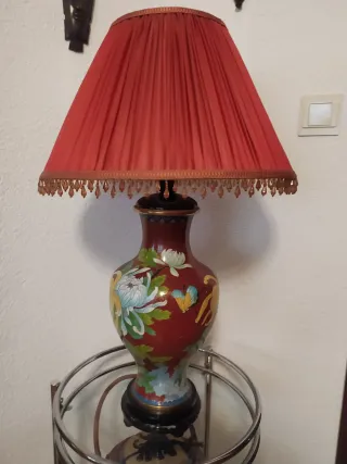 Lámpara de mesa clásica roja y dorada