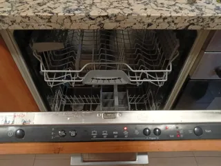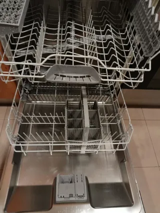 Lavavajillas de la marca Bosch. - Interior con cestas metálicas. - Panel de control con programas y luces indicadoras.