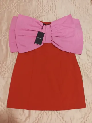 Hola, vendo un mini vestido de Sfera A ESTRENAR, CON ETIQUETA, en color rojo que destaca por su gran lazo en contraste de color rosa, ideal para eventos, fiestas de cóctel e invitadas de novia. Se trata de un modelo bicolor tipo color block con escote palabra de honor. Tiene un maxi lazo en color rosa que adorna tanto la parte delantera como la trasera, creando un efecto de volumen estructurado. Diseño strapless. Tiene forro. Marca: Sfera. El corte inglés. Talla: M Su precio de lanzamiento fue 49,99 €. EL MINI VESTIDO LAZO ESTÁ COMPLETAMENTE A ESTRENAR Y CON SU ETIQUETA. Yo lo vendo por 20€. Menos de la mitad. Un saludo.