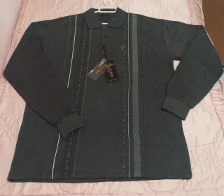 Hola, vendo un suéter polo de entretiempo a estrenar y con su etiqueta para hombre en color gris con adornos en rayas blancas. Marca: GoldMen. Talla: XXXL EL POLO ESTÁ COMPLETAMENTE A ESTRENAR. CON SU ETIQUETA. Lo vendo por 15€ Un saludo.