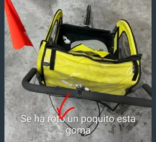 Carro para transportar niños o perros, se acopla a la bicicleta. - Color amarillo y negro. - Ruedas de bicicleta. - Asiento acolchado. - Bandera de seguridad naranja. - amortiguación, sirve para correr también - capacidad para dos niños, con cinturón de seguridad - está plegado listo para llevar y fácil de montar. Está en muy buen estado, casi no se usado. Sólo tiene un detalle en la goma de la manija (ver foto)