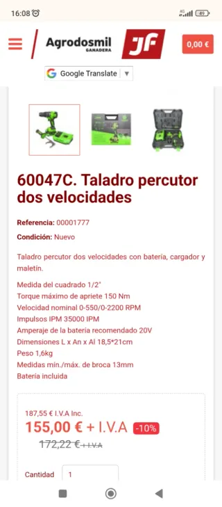 Taladro percutor 60047C con dos velocidades, ideal para trabajos de bricolaje y profesionales. Incluye batería, cargador y maletín para un fácil transporte y almacenamiento. - Modelo: 60047C - Condición: Nuevo - Medida del cuadrado: 1/2 - Torque máximo: 150 Nm - Velocidad nominal: 0-550 / 0-2200 RPM - Impulsos: 35000 IPM - Amperaje de batería recomendado: 20V - Dimensiones: 18,5 x 21 cm - Peso: 1,6 kg - Medidas mín./máx. de broca: 13mm - Batería incluida